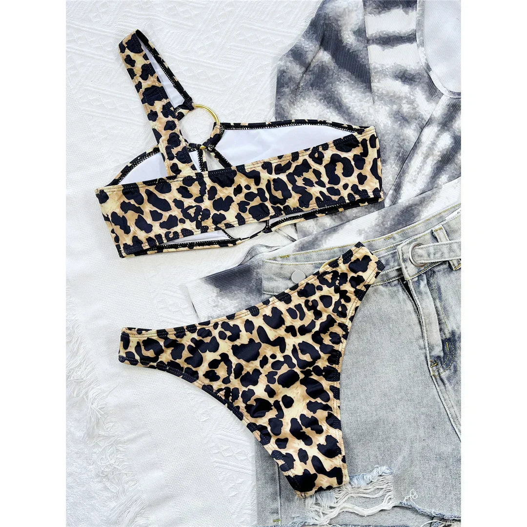 Dwuczęściowy strój kąpielowy z asymetrycznym krojem