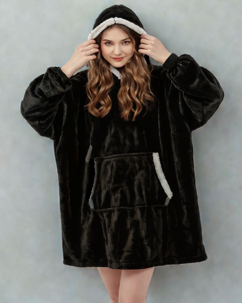 Ciepła kocobluza z kapturem i kieszonką