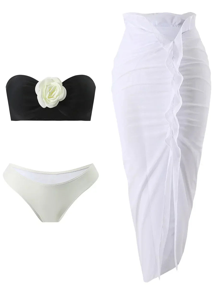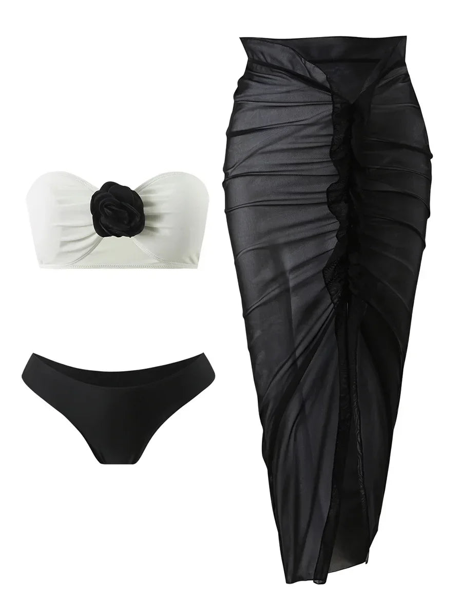 Dwuczęściowy strój kąpielowy z przezroczystą spódnicą
