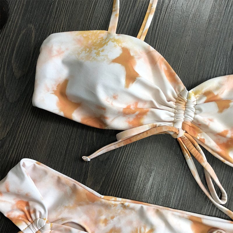 Regulowane ramiączka oraz zapięcie z tyłu gwarantują idealne dopasowanie, a elastyczny materiał sprawia, że kostium doskonale układa się na ciele. Ściągacze nadają charakteru, a wzór tie dye sprawia, że wyróżnisz się z tłumu.