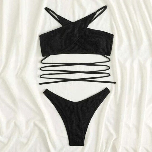 Odkryj swój letni look z tym stylowym dwuczęściowym kostiumem kąpielowym, który łączy nowoczesny design z praktycznością. Składa się z biustonosza oraz majtek, które razem tworzą spójną całość, idealną na plażę lub basen.