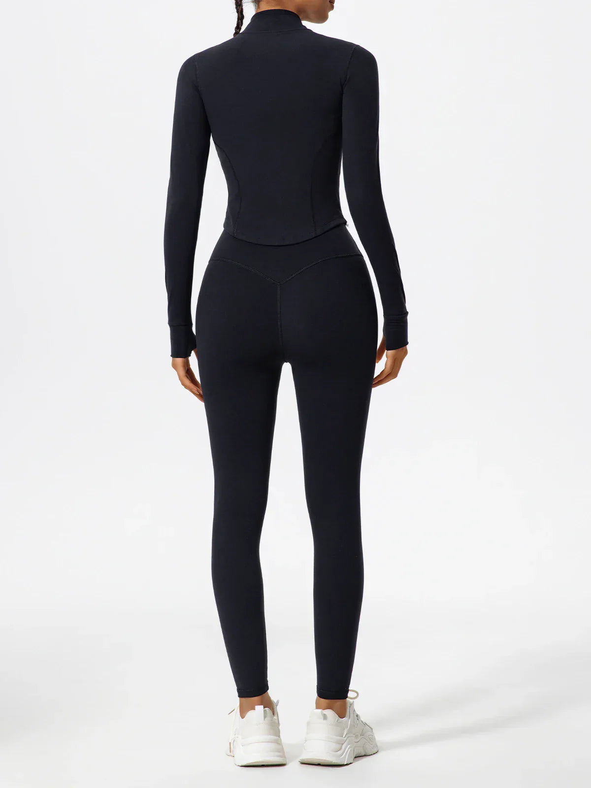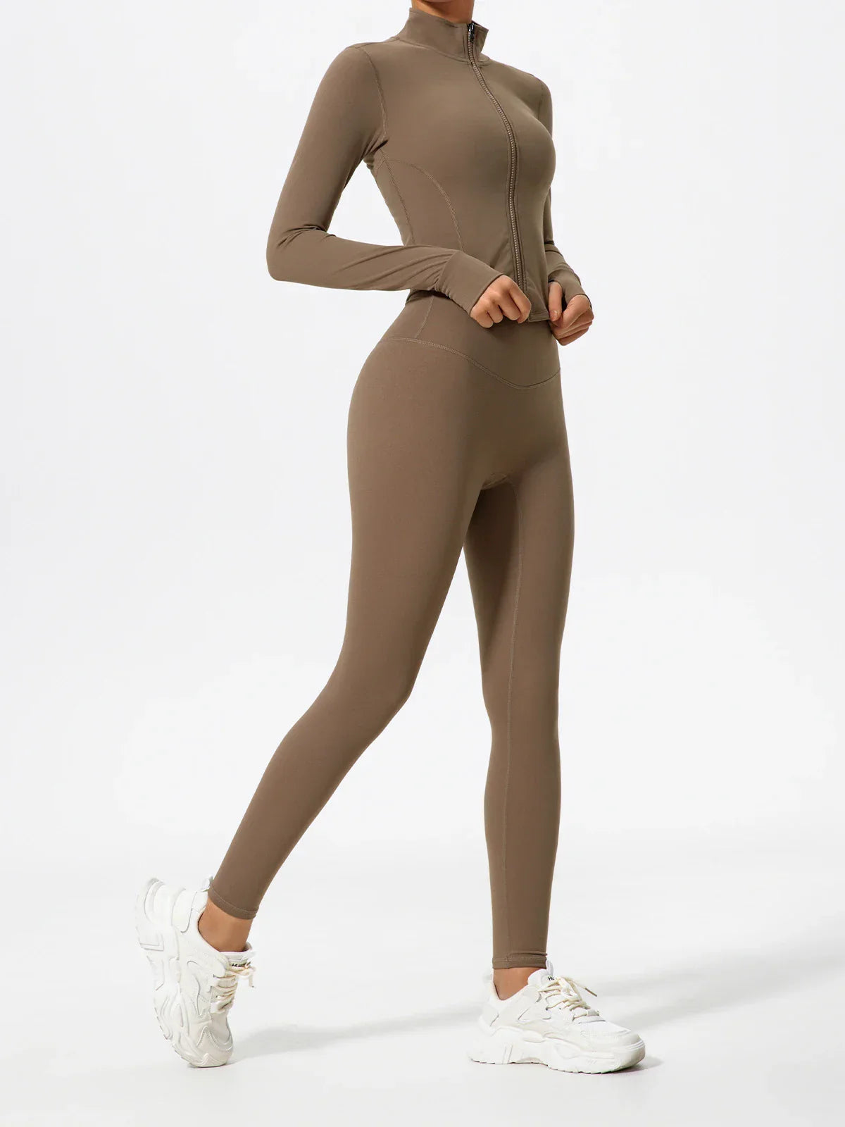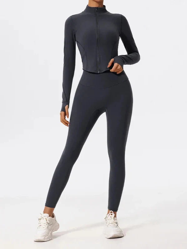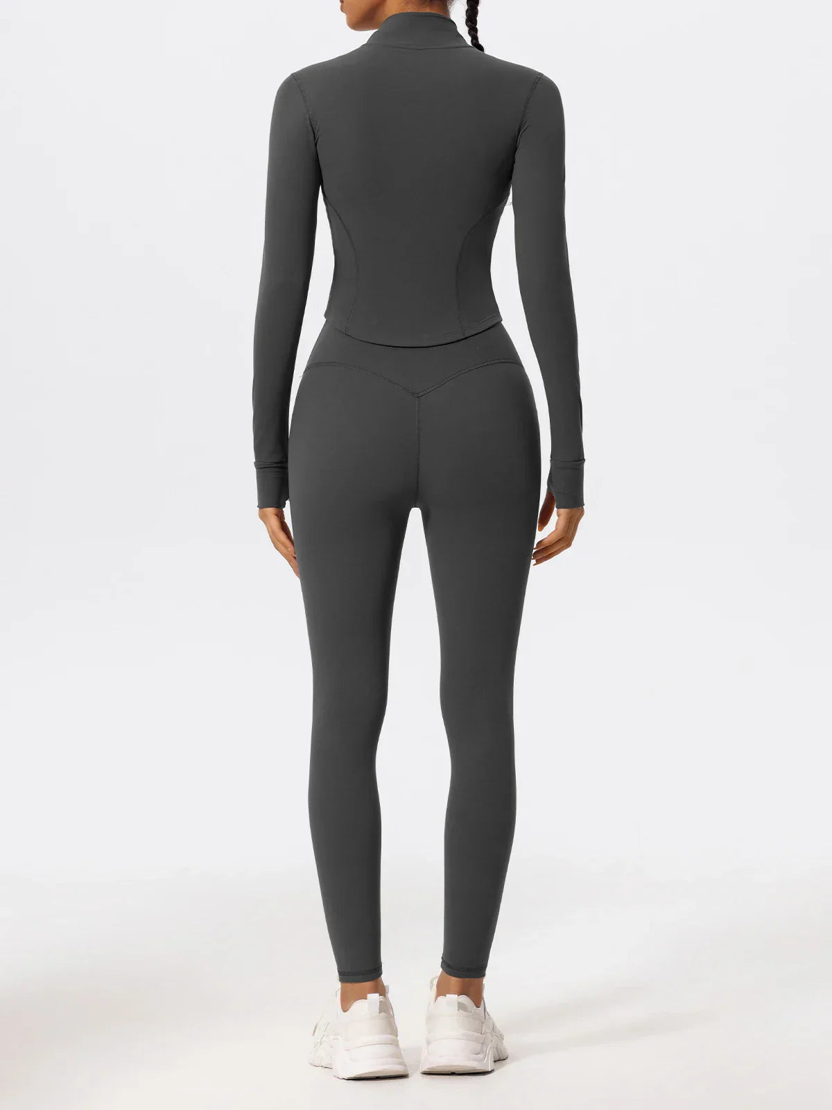 Sportowy zestaw to idealna propozycja dla entuzjastek jogi oraz aktywności fizycznej. Podkreśla atuty kobiecej sylwetki, jednocześnie oferując wsparcie.