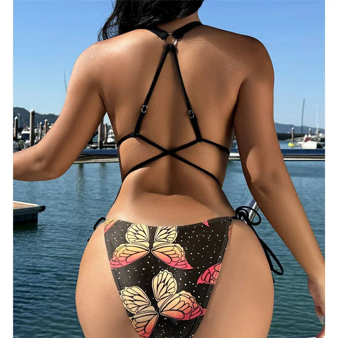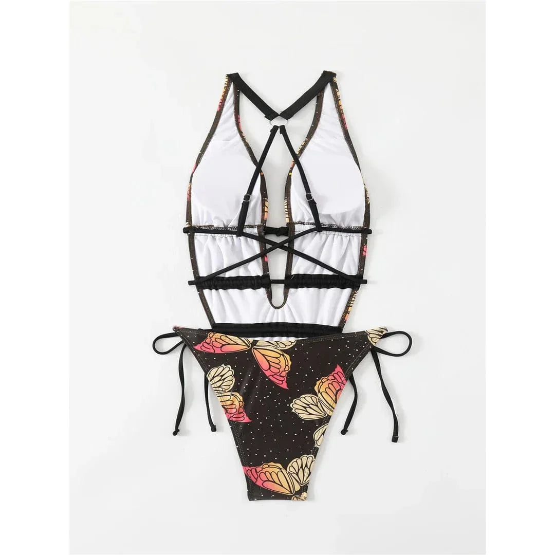 Ten jednoczęściowy kostium kąpielowy z motywem motyli to doskonały wybór na letnie dni, łączący elegancję z odrobiną szaleństwa. Odkryte plecy oraz głęboki dekolt sprawiają, że będziesz wyglądać olśniewająco na plaży lub basenie, a wiązania na biodrach i brzuchu umożliwiają perfekcyjne dopasowanie do Twojej sylwetki.
