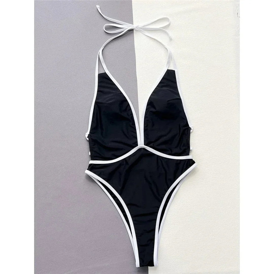 Przygotuj się na lato z tym jednoczęściowym kostiumem kąpielowym, który łączy nowoczesny styl z praktycznością. Jego odkryte plecy oraz głęboki dekolt w kształcie litery V sprawią, że poczujesz się pewnie i atrakcyjnie nad wodą.
