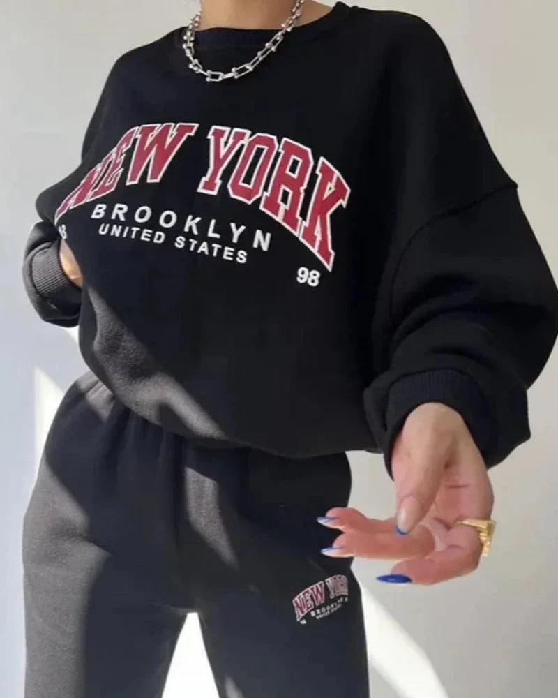 - Stylowa bluza oversize z nadrukiem "New York Brooklyn".