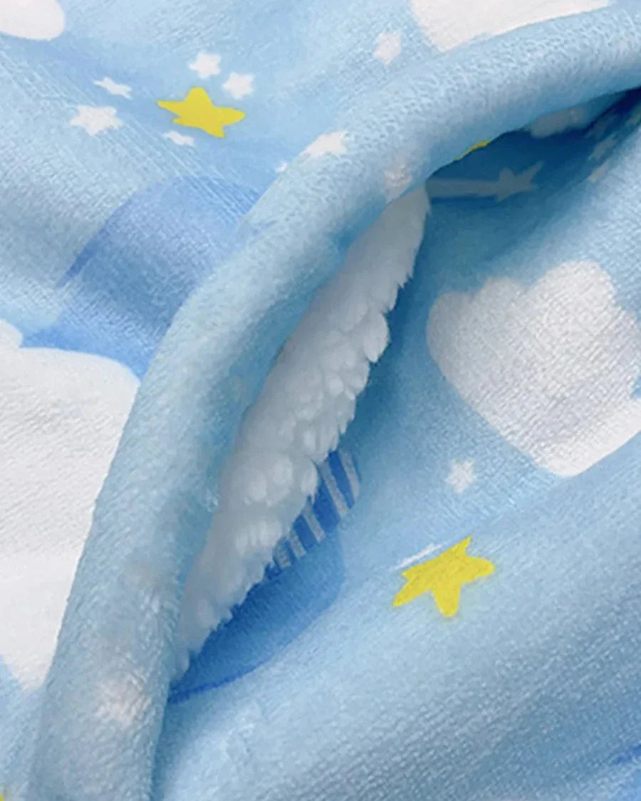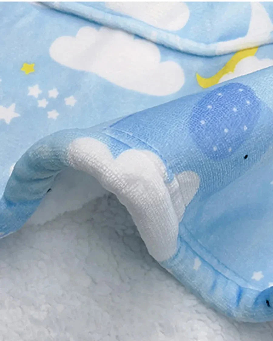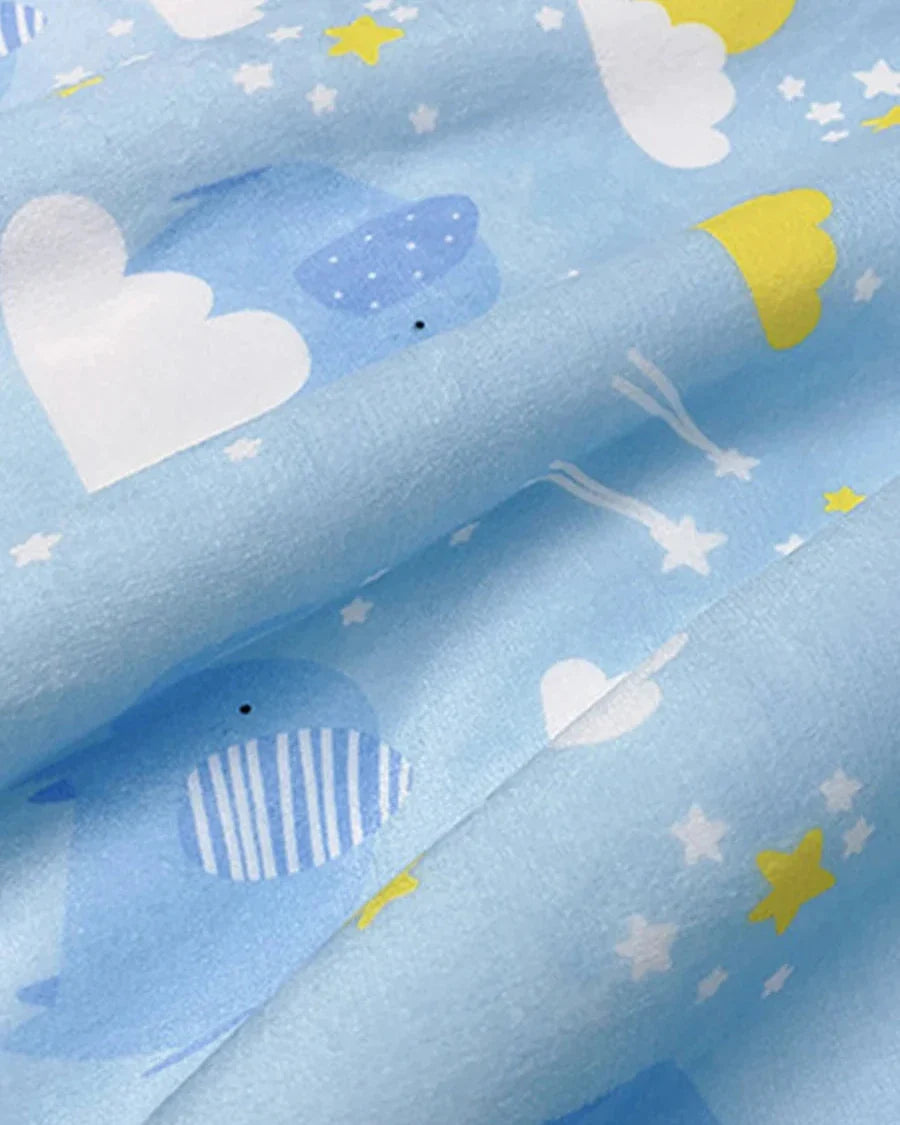 - Uroczy wzór z chmurkami i księżycami dodający uroku.