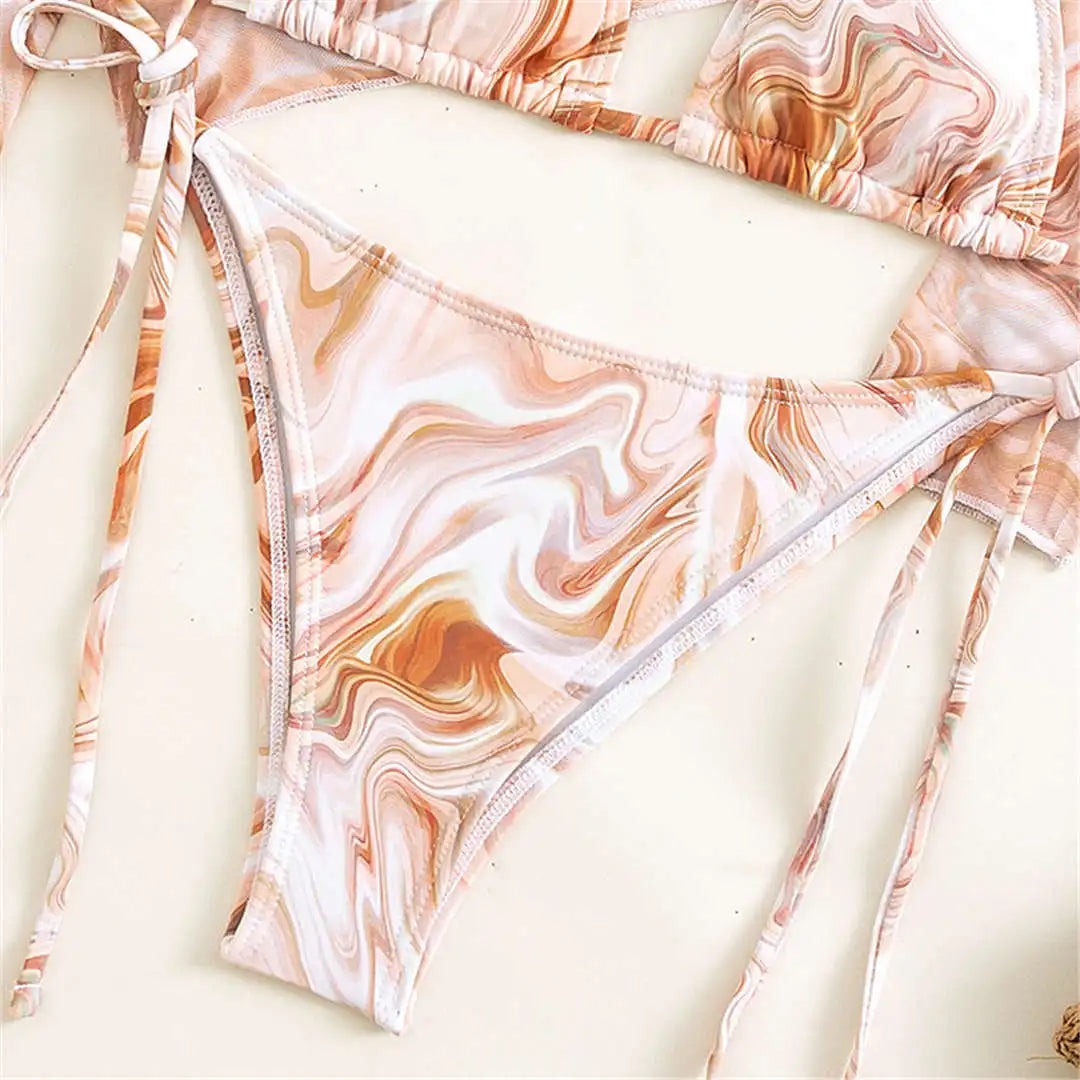 Komplet kąpielowy z długim rękawem i siateczkowym topem